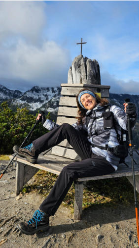 Unser erstes Ziel ist das Rossfeld. Es ist im Bild rechts zu sehen. Olgas Vorfreude ist heute unübersehbar.