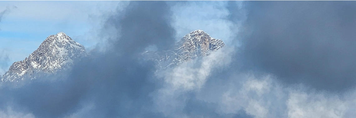 Torstein und Dachstein zeigen sich abwechselnd zwischen den Nebelschwaden.