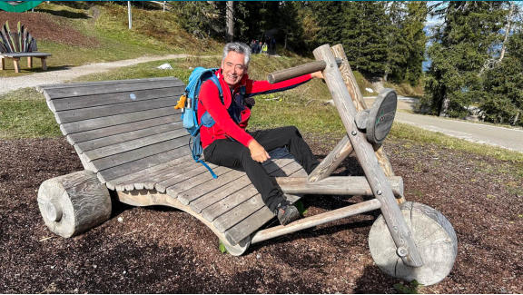 Von hier gibt es jede Menge Wanderwege und das in alles Schwierigkeitskategorien. Die Bank, die gefällt mir besonders gut.