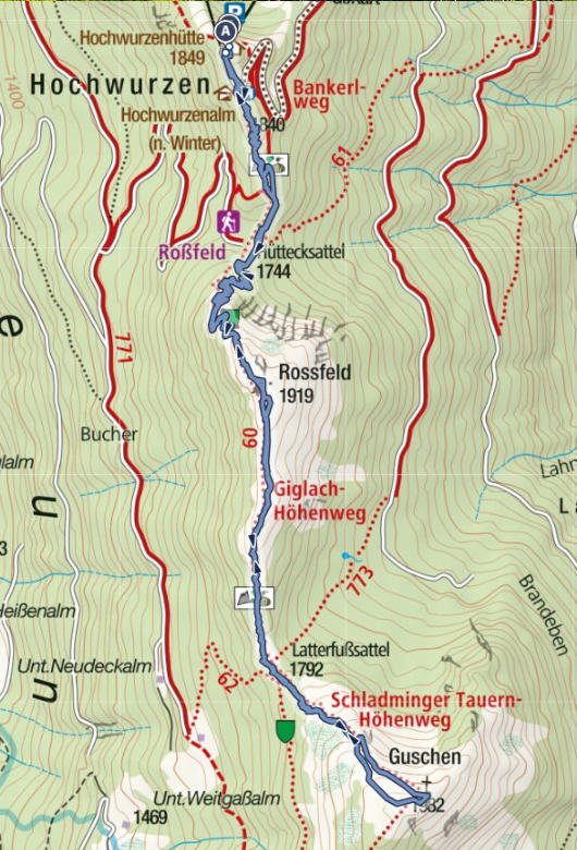 Am Guschen mit Ausblick auf Schneider und Hochfeld. Eine Tour die durchaus seinen Reiz hätte bis zu den Giglachseen