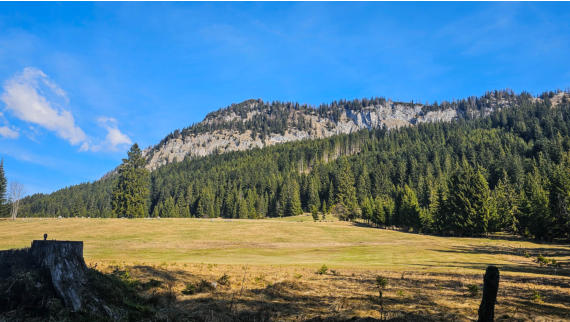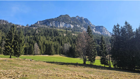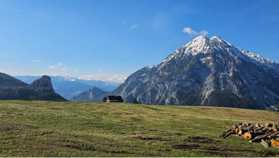 Beim Wörschachwalderhof beginnen wir mit herrlichem Blick auf den Grimming.