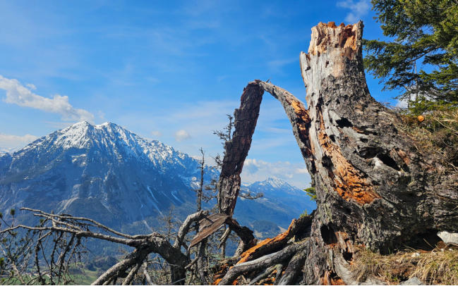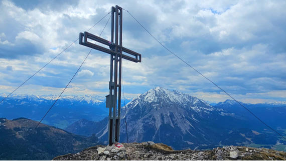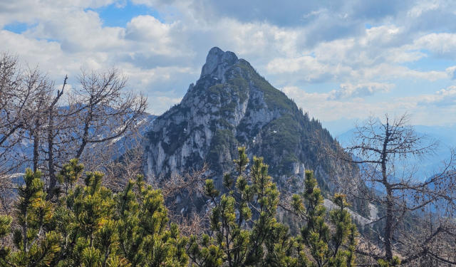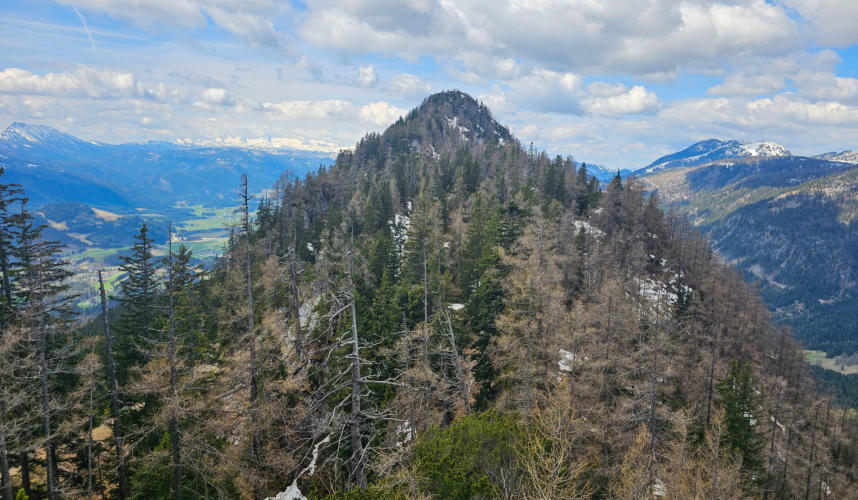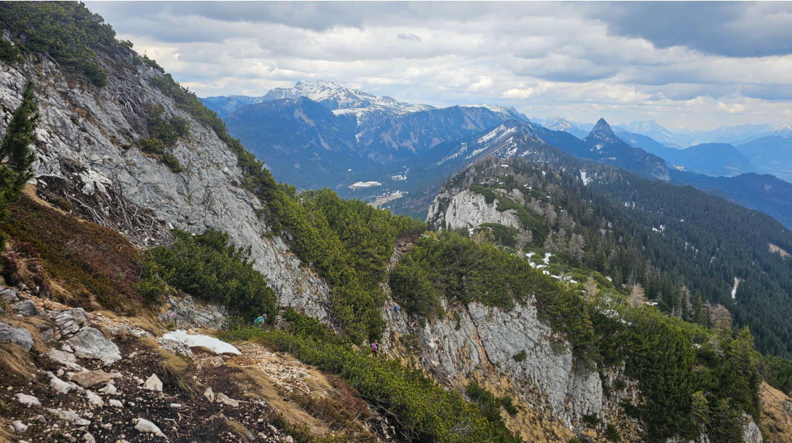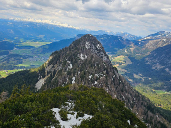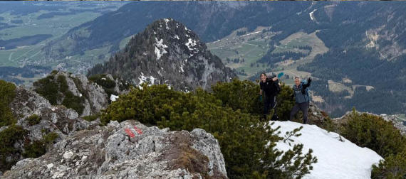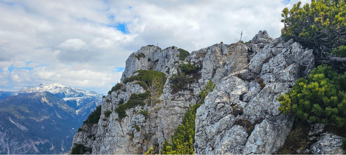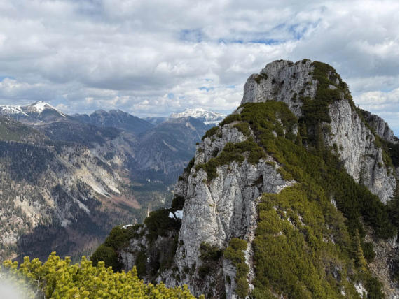 Der erste Gipfel ist erreicht. Zur Belohnung gibts einen herrlichen Ausblick auf unser nächstes Ziel - den Hechlstein.