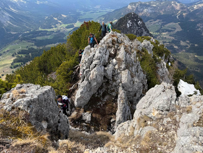 Von dort über den Westgrat des Hechlstein wieder hinauf und in Richtung Hochtor wieder hinunter.