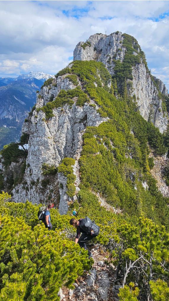 Die ausgesetzte, nicht seilversicherte Stelle am Grat und