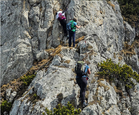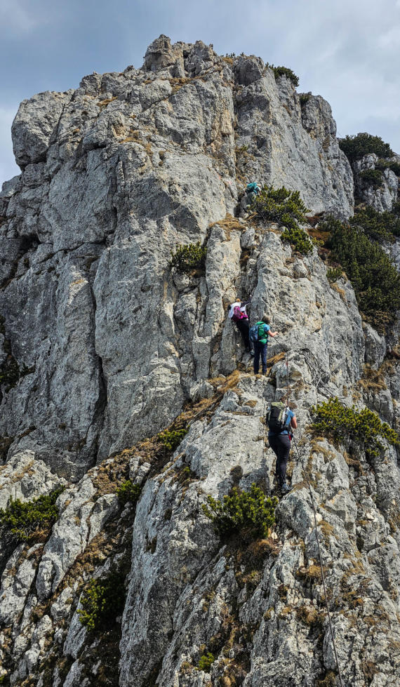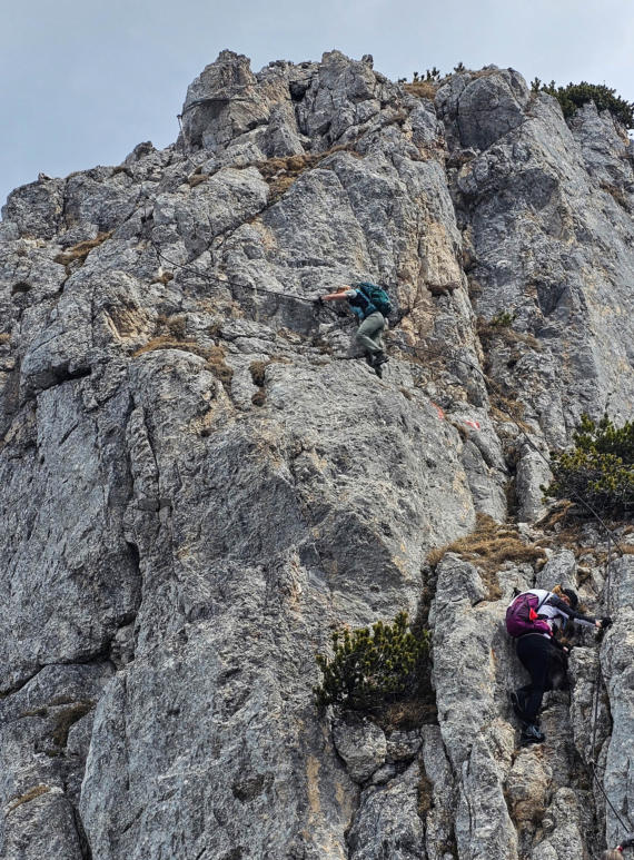 Es wird bis zum Schluss nicht leichter. Immer wieder leicht ausgesetzte Passagen, wobei nicht alle seilversichert sind.