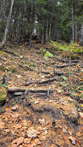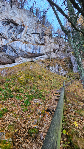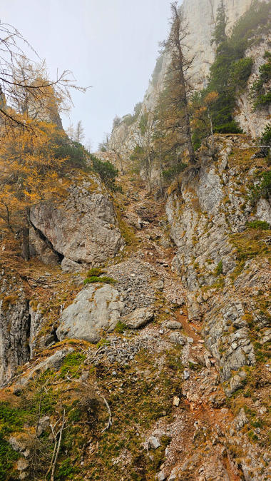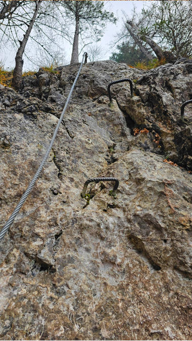 Der Steig hat auch einige “Wanderpassagen”. Im Normalfall finde ich das gut, heute bei dem rutschigen Wetter gefällt es mir weniger.