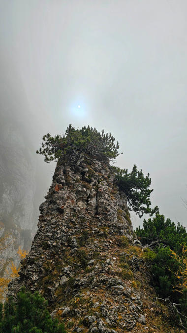 Beim Abstieg nach Schüssserlbrunn haben wir dann Sonne, Nebel und auch bald die Finsternis erlebt.