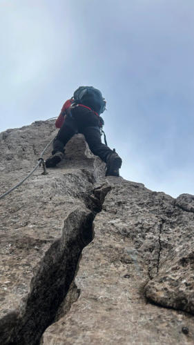 Damit sind wir auch schon bei der “Schlüsselstelle” angelangt. Eine C/D-Stelle ziemlich am Ende des Steiges.