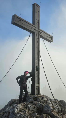 Am Gipfel kam gaaaaanz kurz die Sonne hervor. Ein, zwei blaue Wolken waren zu sehen... und schon waren sie wieder weg.
