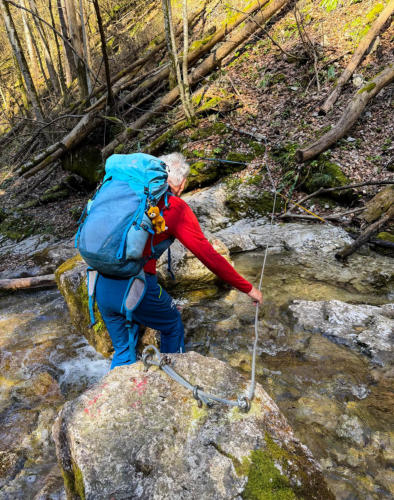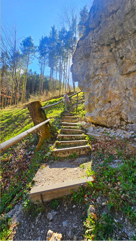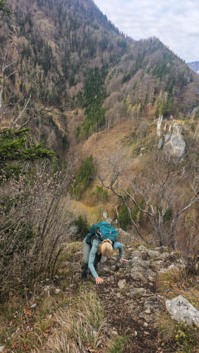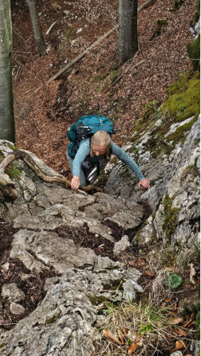 Von Beginn an ging es steil nach oben, unser erstes Highlight der Tour war das Felsenfenster kurz vor der Bräumauer.