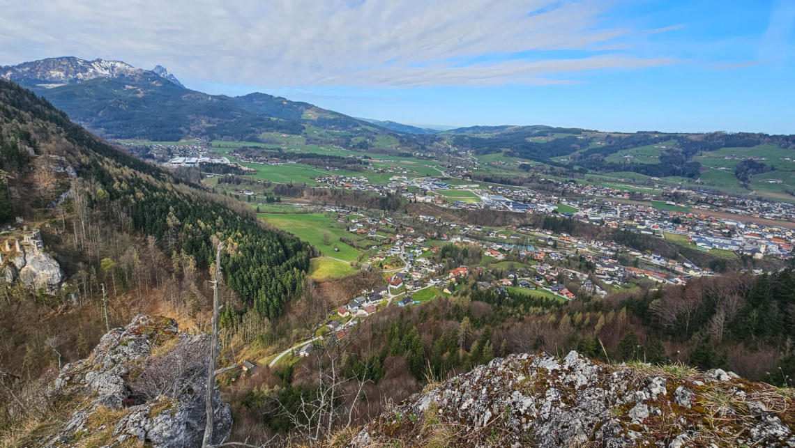 Bei der Bräumauer mit gutem Ausblick auf Scharnstein.