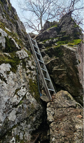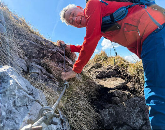 Es bleibt steil und ruppig bis zum Maisenkögerl. Ein paar leicht ausgesetzte Stellen, ein paar Seile, eine Leiter, schön ist es hier.