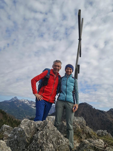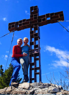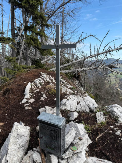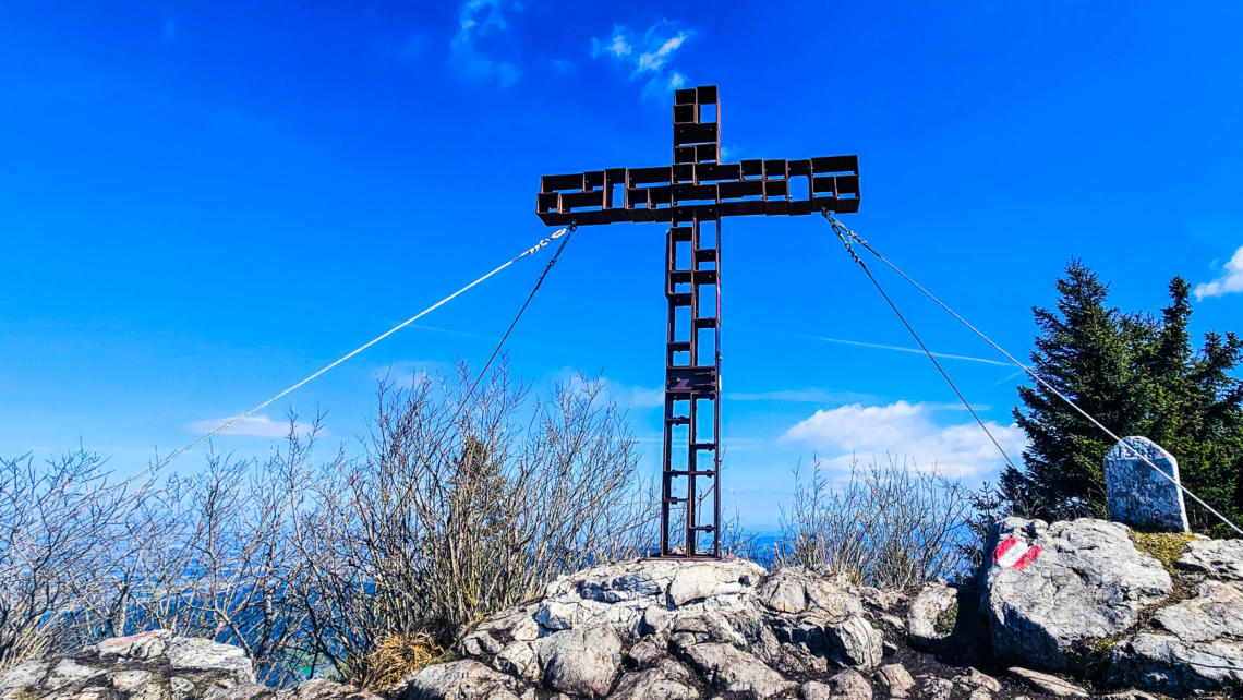 Nach der wohl kürzesten seilversicherten Stelle die ich kenne sind wir “glei” beim Gipfelkreuz am Hochsalm angelangt.