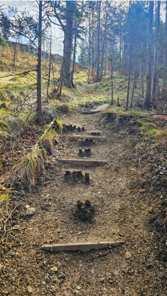 Der Abstieg ist problemlos, wohl auch weil er gepflegt wird. Dafür an dieser Stelle ein DANKE an den Herrn mit dem Rechen!!!!