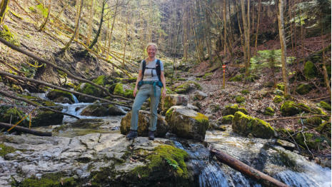 Bevor wir zum Hochsalm gehen, machen wir noch einen Abstecher zum Hutkogel auf 1.054m. Es ist nicht schwierig, aber steil.