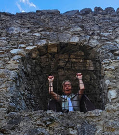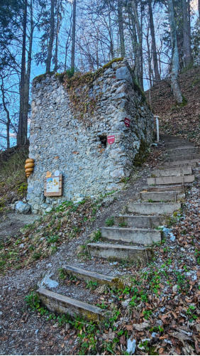 Über zahlreiche Treppen gehen wir hinauf zur Ruine. Hurra, da kommt Freude auf. Das geht jetzt ordentlich in die Beine.