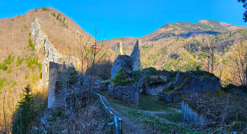 Aber nein - es gibt doch noch die Ruine Scharnstein. Da müssen wir noch rauf. Romana ist von meinem Vorschlag begeistert.