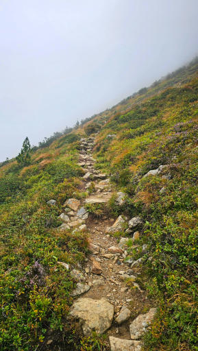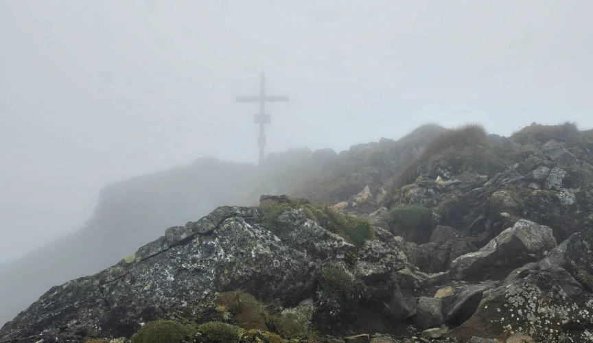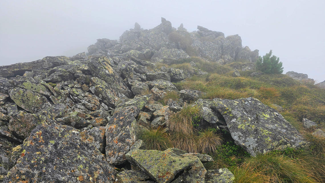 Hornfeldspitze im Nebel, 2.277m - leider keine Aussicht.