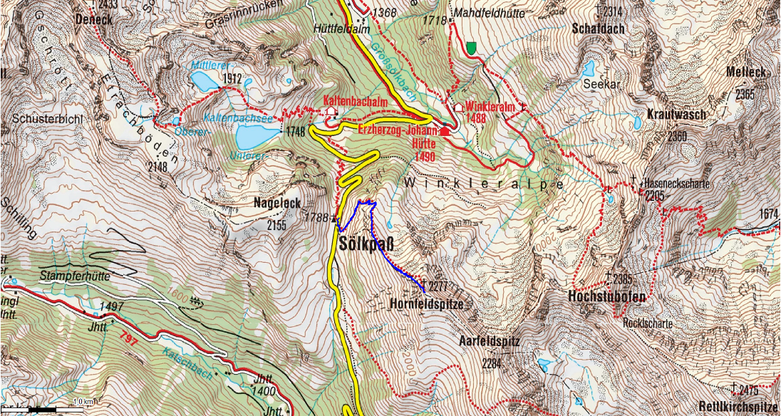 Das Wetter ist ähnlich wie gestern. Wechselhaft, immer wieder ein paar Regentropfen und die Berge Wolkenverhangen. Auch heute auf meiner Tour vom Sölkpass auf die Hornfeldspitze geht es nur um die Bewegung und die Luft in der Natur.Die Aussicht ist schon nach wenigen Metern gleich null. Schade, dabei ist gerade die Hornfeldspitze ein schöner Aussichtsberg. Somit gibt es auf dieser Tour nur wenige “Höhepunkte”. Hier ein paar Bilder davon.Am Sölkpass beim Kirchlein beginnt die Tour. Nach nur wenigen Metern höre ich zwar die Motorräder, sehe aber nur mehr Nebel.