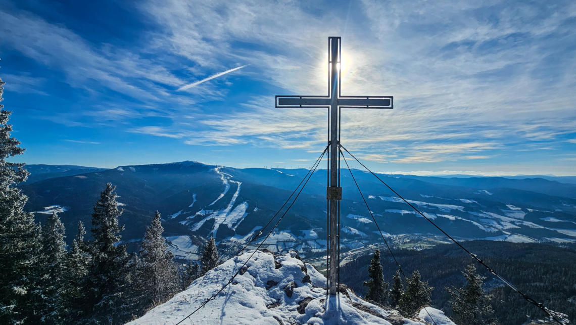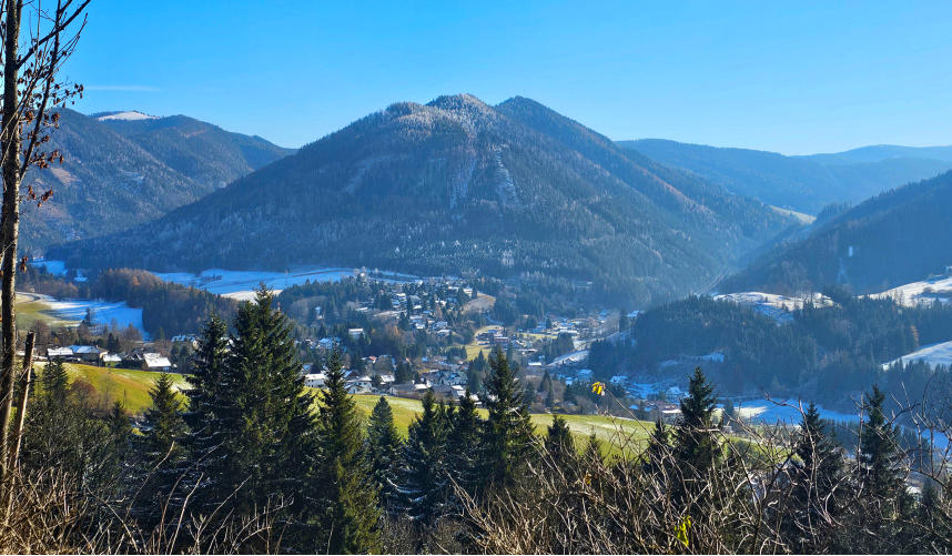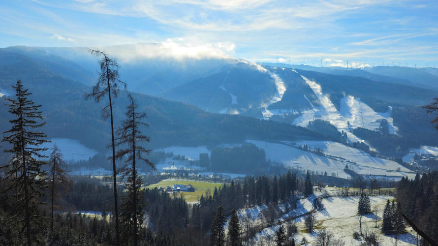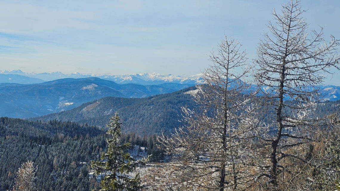 Kampalpe, 1.516m mit Stuhleck im Hintergrund. Ein herrlicher Tag ist das heute.