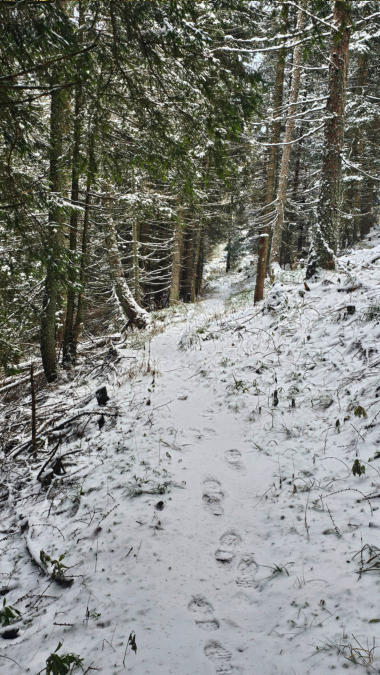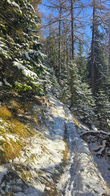 Das Jausenplatzerl lag doch ein wenig zu sehr im Schatten. Unser Weg führt hinunter zur Passhöhe am Semmering, welcher