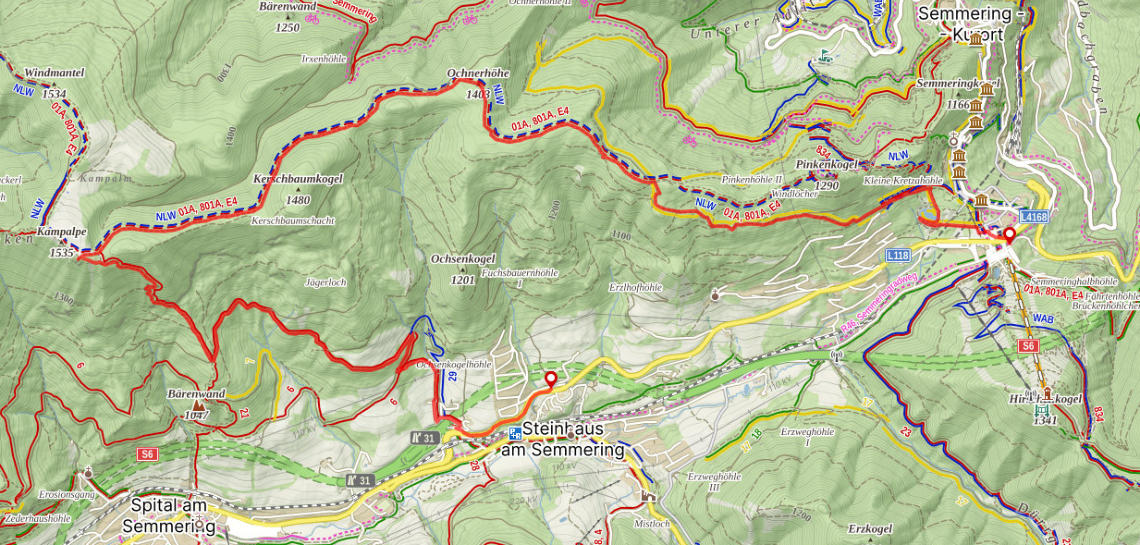 Heute war ich mit Olga vom Ausgangspunkt Spital am Semmering/Stuhleckblicksiedlung und Ziel Semmering-Passhöhe unterwegs.
