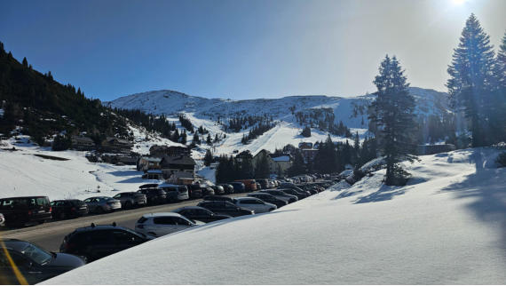 Und den hatten wir - los geht es gleich vom Parkplatz auf einer alten Skispur in Richtung Goldeckscharte.