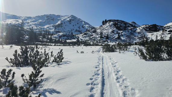Einige gehen von hier zum Schreinl. Das ist mit Skiern ganz gut erreichbar, für uns Schneeschuhgeher jedoch zu weit.