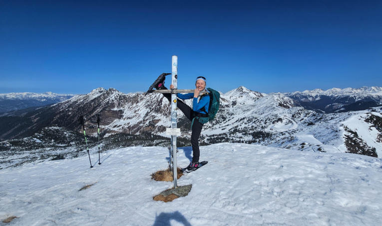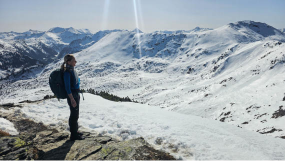 Alle packen ihre Ski aus - nur Romana und ich nehmen stehen mit ihren Schneeschuhen da. Viele verwunderte Blicke.