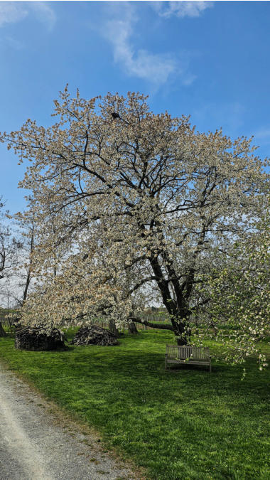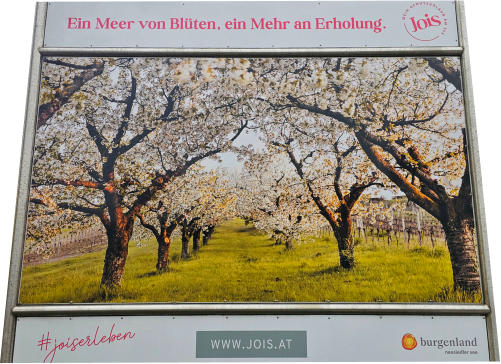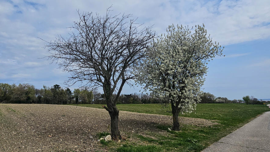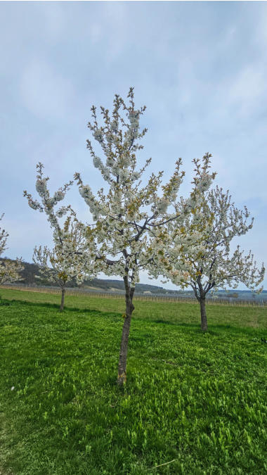 Gestern haben wir nur wenige blühende Marillenbäume gesehen. Heute beim Neusiedlersee sind die Kirschbäume voll in der Blüte.