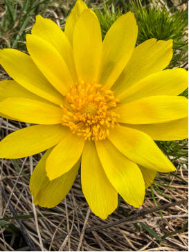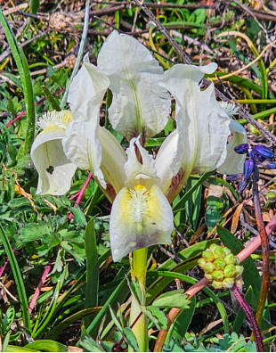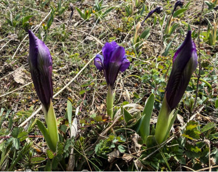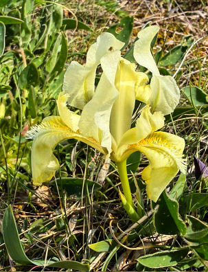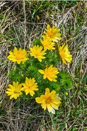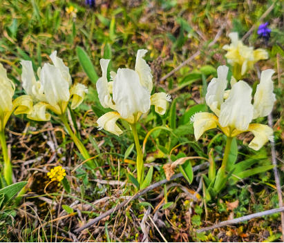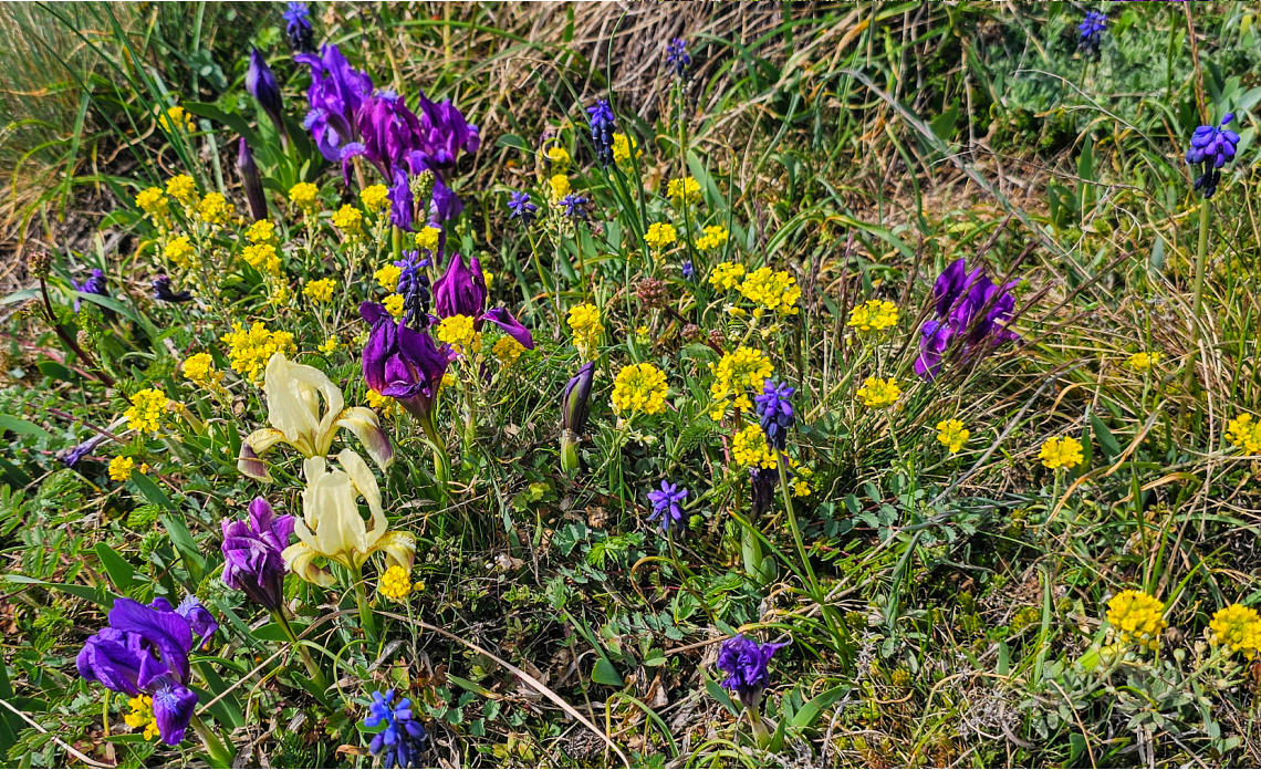 Zwerg-Schwertlilie (Iris pumila), Frühlings-Adonis (Adonis vernalis), Sibirische Glockenblume (Campanula sibirica),