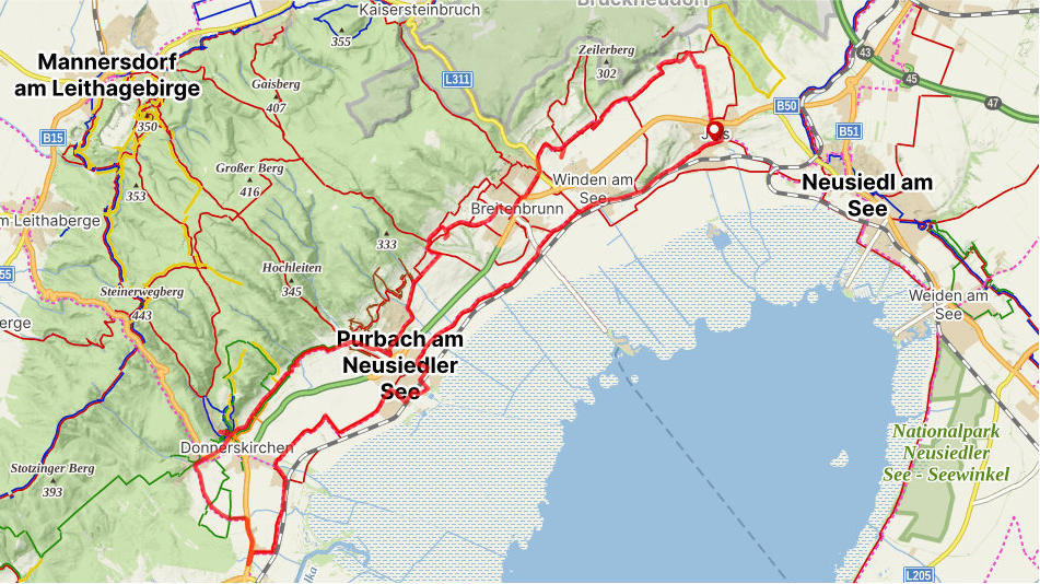 In Donnerskirchen machten wir auch die Schleife. Von hier sind es ca. 18km zurück nach Jois.
