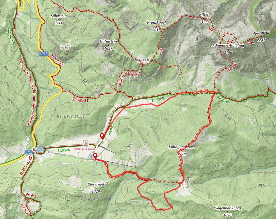 Unser Ziel war der Lahngangkogel über die Wagenbänkalm und weiter zur Klinkehütte bevor es wieder in die Kaisserau ging.