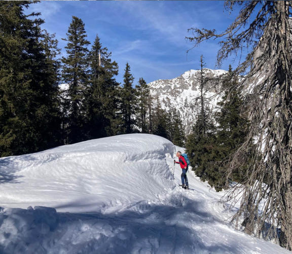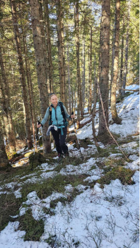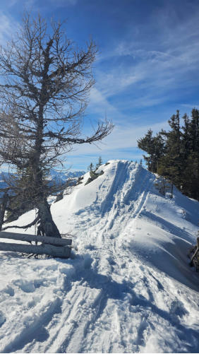 Die heutige Schneeschuhtour hat uns besonders gefallen. Wir sind ca. 10km gegangen und dabei fast 700Hm aufgestiegen.