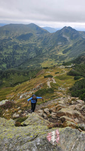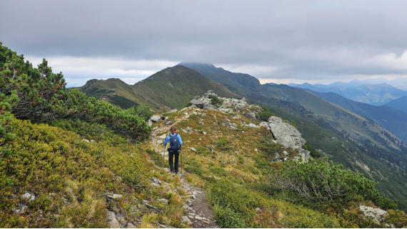 Olga am Weg zum Plannerknot. In den Wolken der Hochrettelstein.