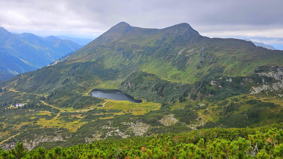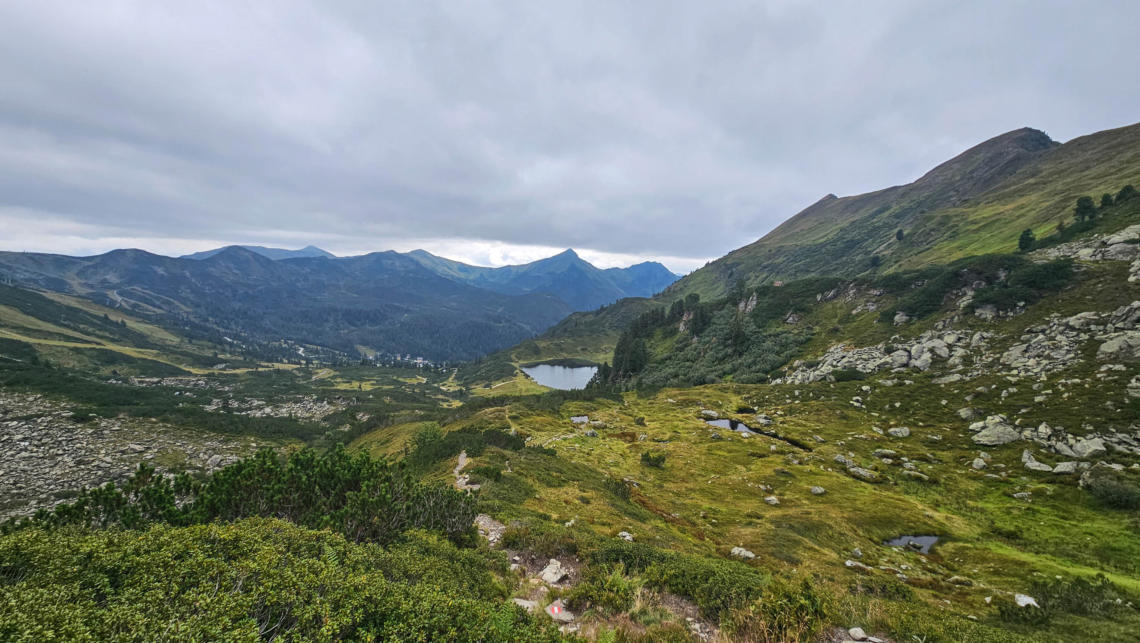 Vom Plannerknot steigen wir zum Plannersee ab. Im Hintergrund die Schoberspitze.