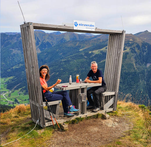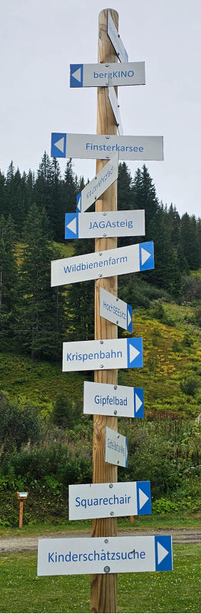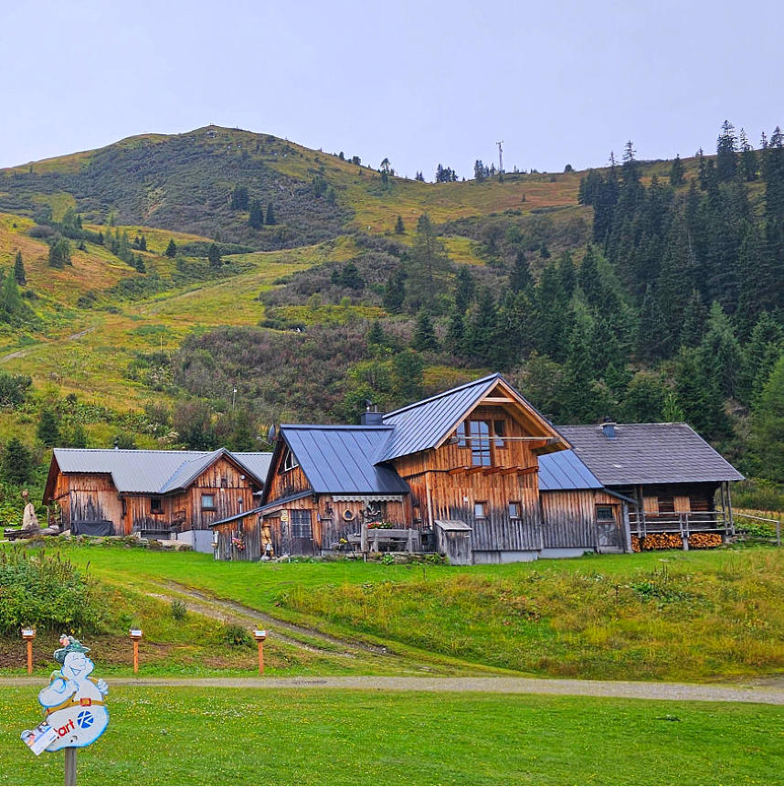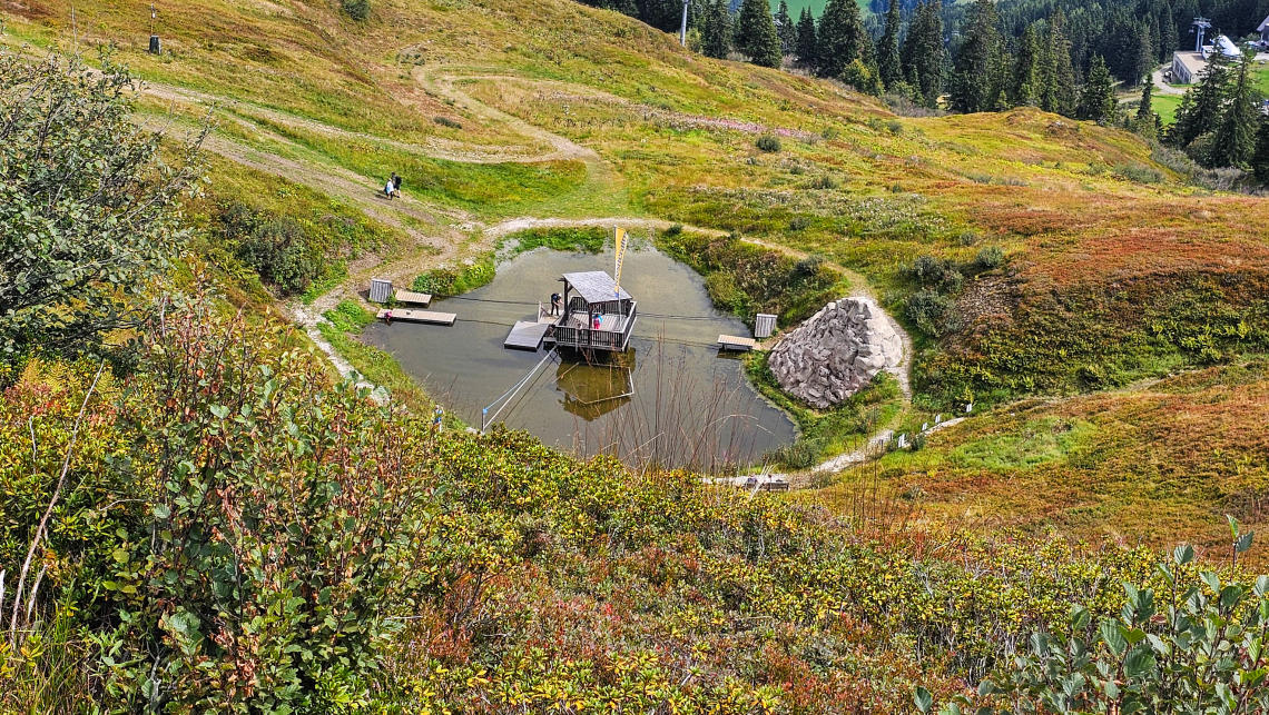 Die Riesneralm ist sehr kinderorientiert. Wir finden das sehr nett hier. Kleine Insel mit Floß erreichbar. Schöne Idee.