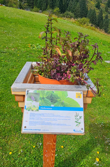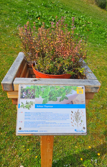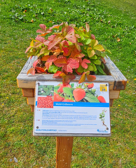 Thymian, Wald-Erdbeeren und Pfefferminze. Mit Erklärung und zum Kosten. Wie schon erwähnt, echt gut gemacht.