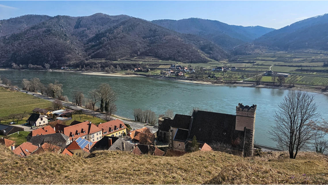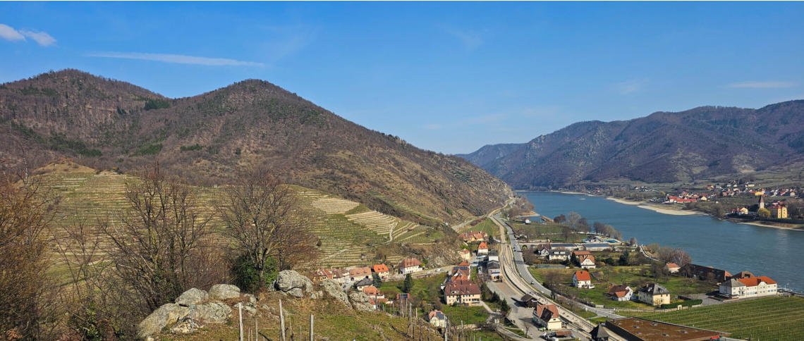 Herrlich zwischen den Weinterrassen aufzusteigen und dann den Ausblick hoch über Spitz an der Donau zum Michaelerberg, Arzberg.