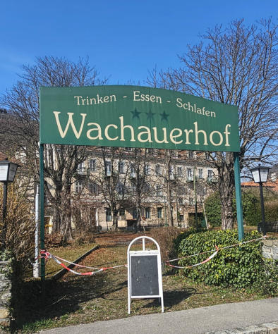 Transparente überall. Marillen gibt es hier ganzjährig im Angebot. Über das Wappen von Spitz habe ich länger nachgedacht.Was soll es darstellen? Nun, ich hätte einige Ideen, sie werden aber wohl nicht das sein was es sein sollte. Vielleicht weiß es hier ja einer meiner Leserinnen und Leser? Würde mich über Aufklärung dessen sehr freuen.Der Wachauerhof hat leider auch schon den Glanz seiner Sterne verloren.