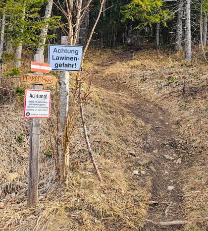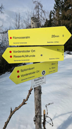 Beim Abstieg wählen wir beim ersten Teil die Forststraße. Danach geht es wieder ohne Schneekontakt hinunter nach Vorderstoder. #