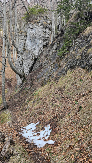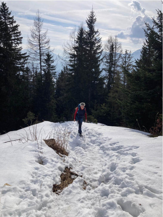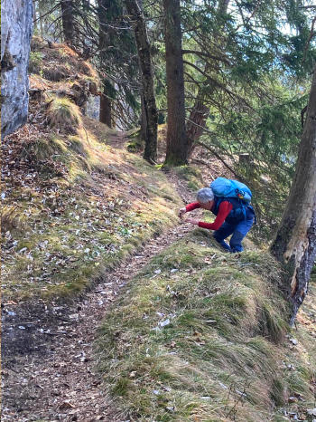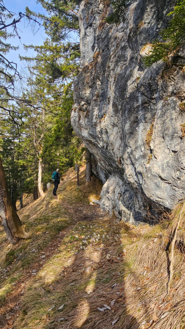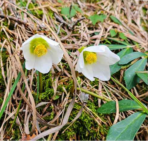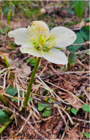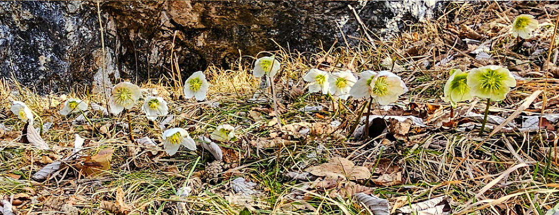 Wir gehen vorerst auf den Wanderweg 5 zum Spitzmäuerl. Bei frühlingshafte Temperaturen sehen wir die ersten Schneerosen.