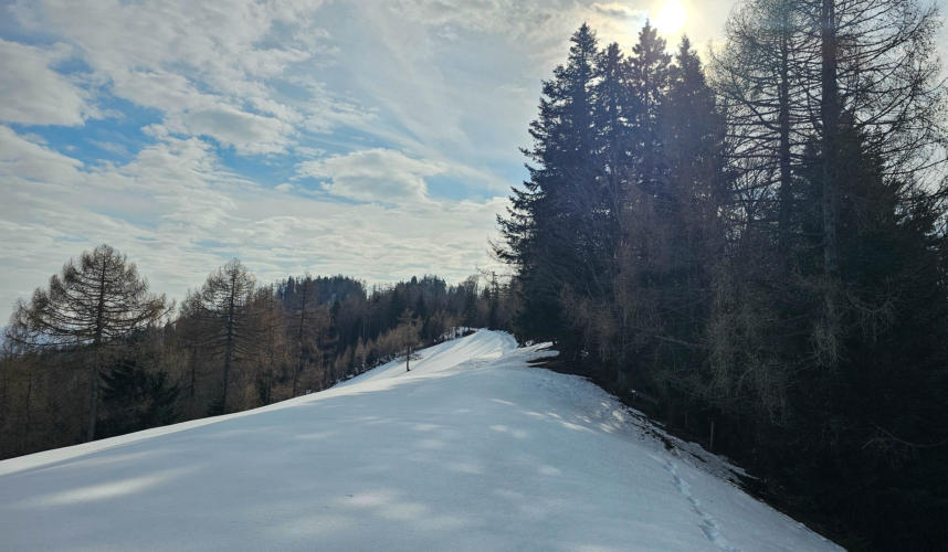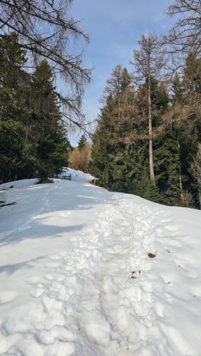 Ab hier ist nämlich Winter. Es heißt wieder einmal Schneestapfen. Zum Glück ist eine Spur vor uns die wir nutzen können.