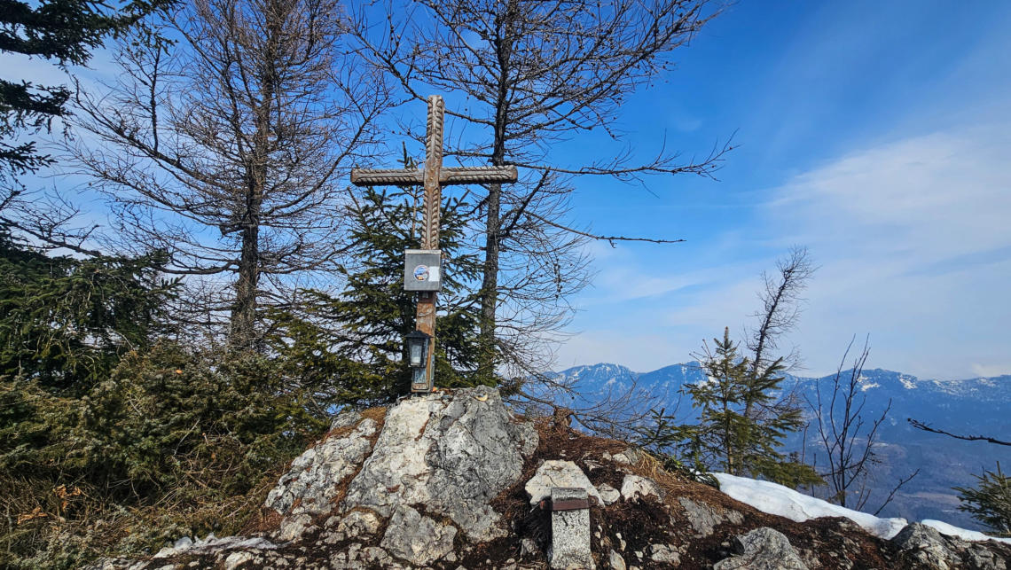 Am Tamberg auf 1.516m ist nicht nur ein schönes Gipfelkreuz, es gibt jetzt auch ein neues Bankerl.