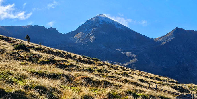 Sölkpass, Naageleck, Deneck, uvm. Gut zu erkennen auf der Wiese die ersten Schneereste der vergangenen Nacht.