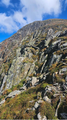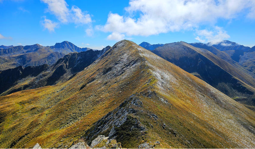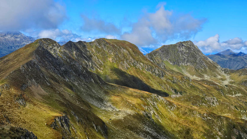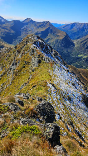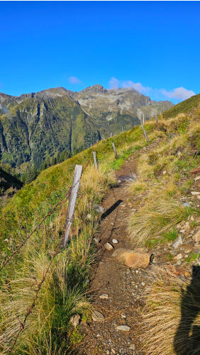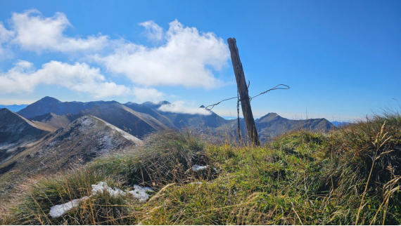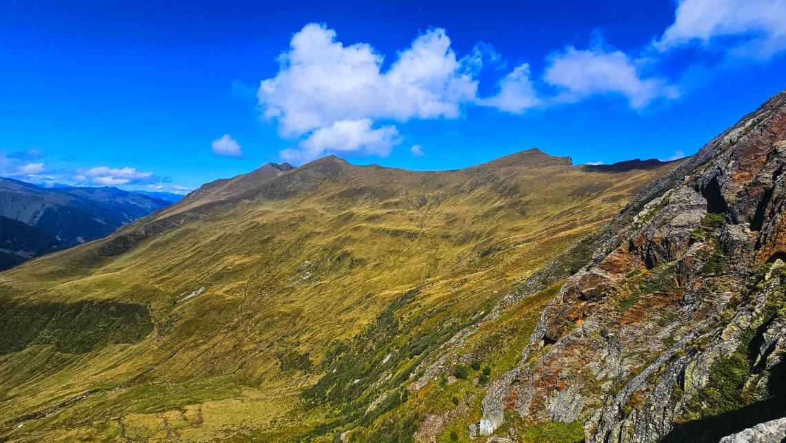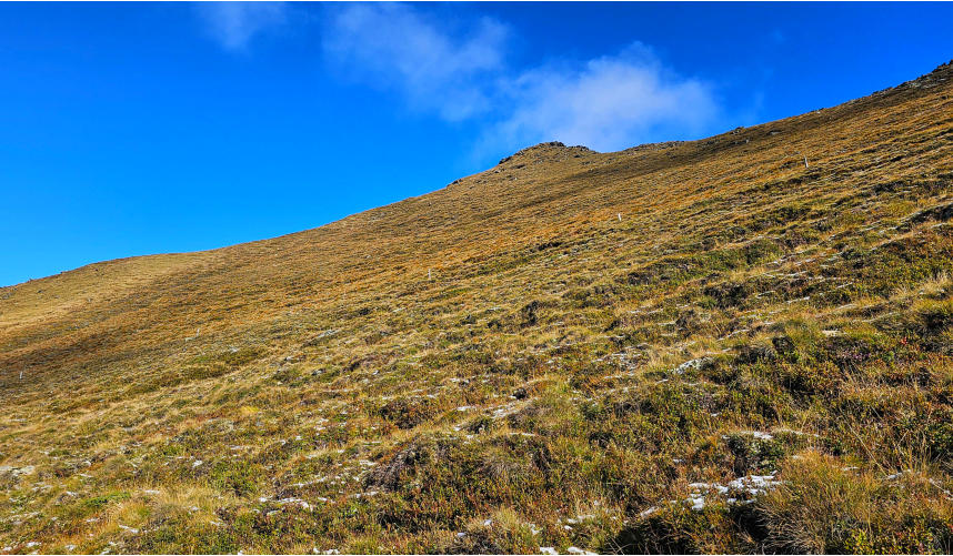 Kurz danach wird es weglos und geht über teils steile Wiesen in Richtung Tischfeldspitze.