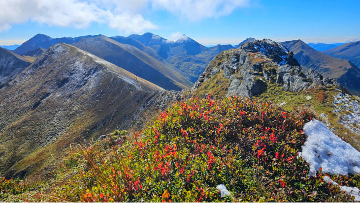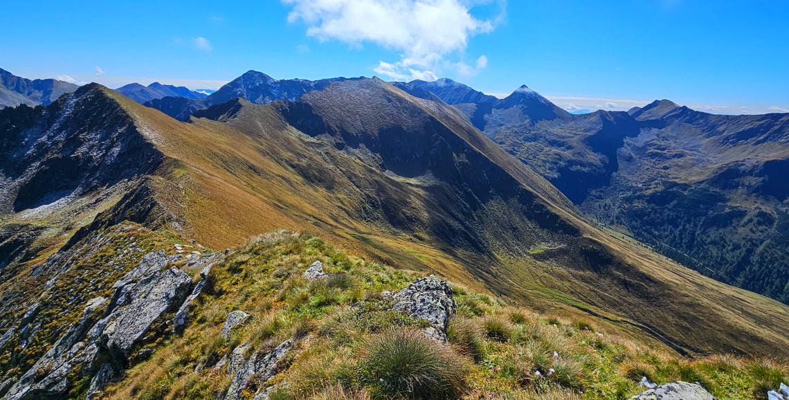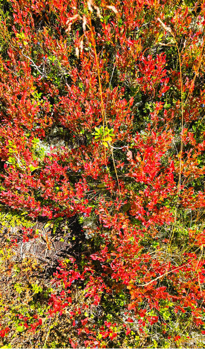 Von der Tischfeldspitze gehen wir zum Kammkarlspitz. Die rötlichen Blätter von den Heidelbeeren, die vielen Preiselbeeren