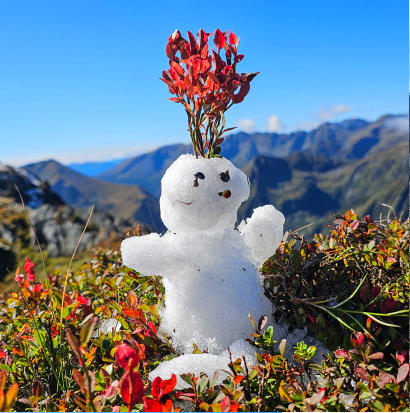 und die wunderbare Aussicht verleiten uns zu zahlreichen Fotopausen. Und natürlich!!! Der erste Schneemann mussste gebaut werden.