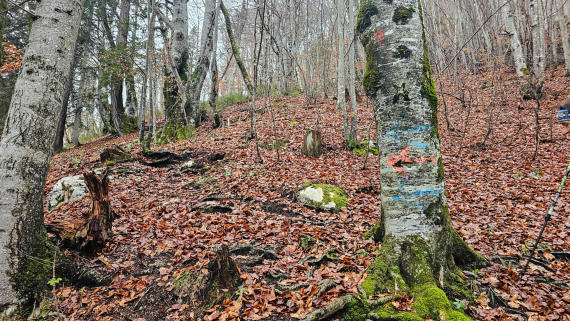 Rote Markierungen, Blaue Markierungen, manchmal ein Steinmännchen. Also man muss schon sehr genau aufpassen wo es lang geht.
