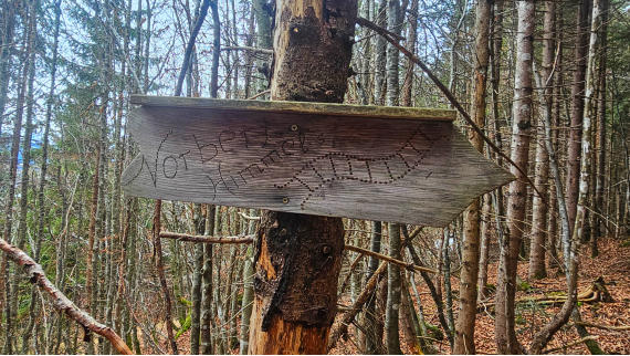 Leider steht die Tafel “Norberts Himmelsleiter” erst einige Meter oberhalb der Abzweigung. Danach ist der Weg spärlich zu erkennen.